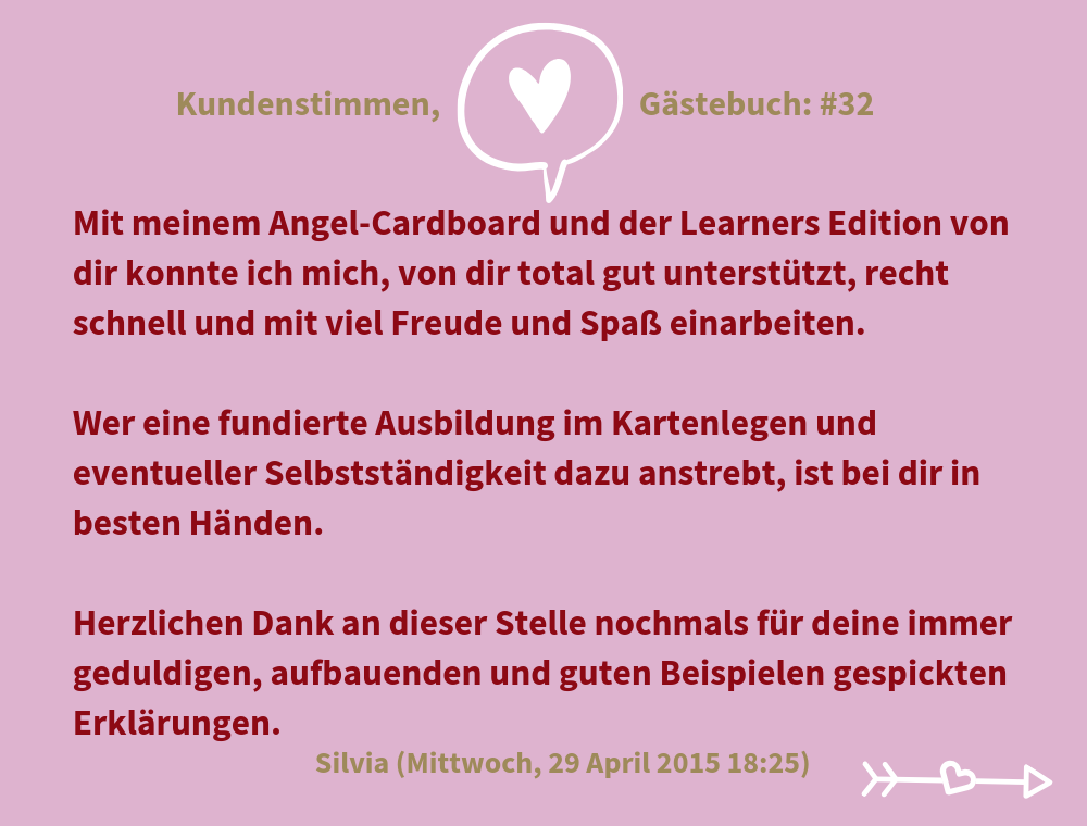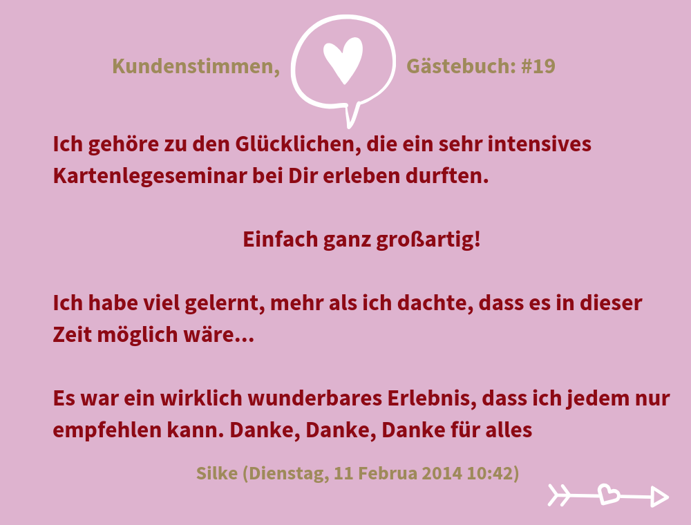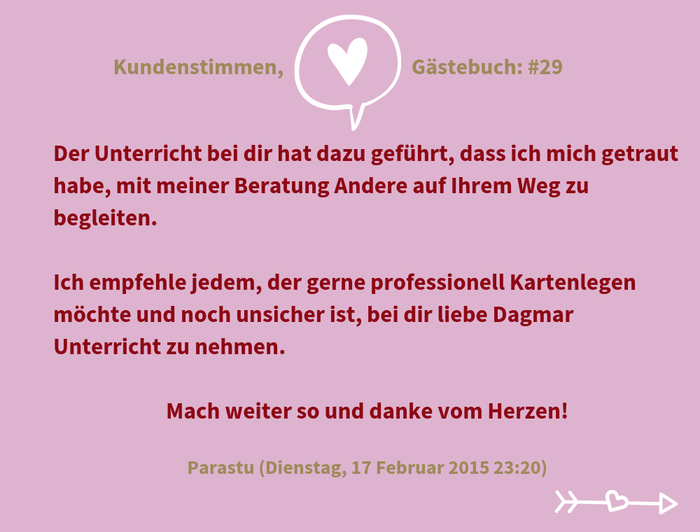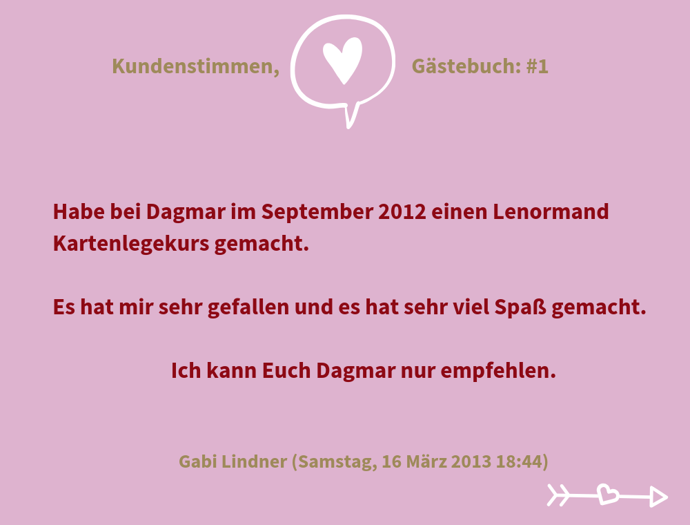 "Ich hab den Profi-Lenormand-Kurs und den Karma-Lenormand-Kurs bei Dagmar absolviert.